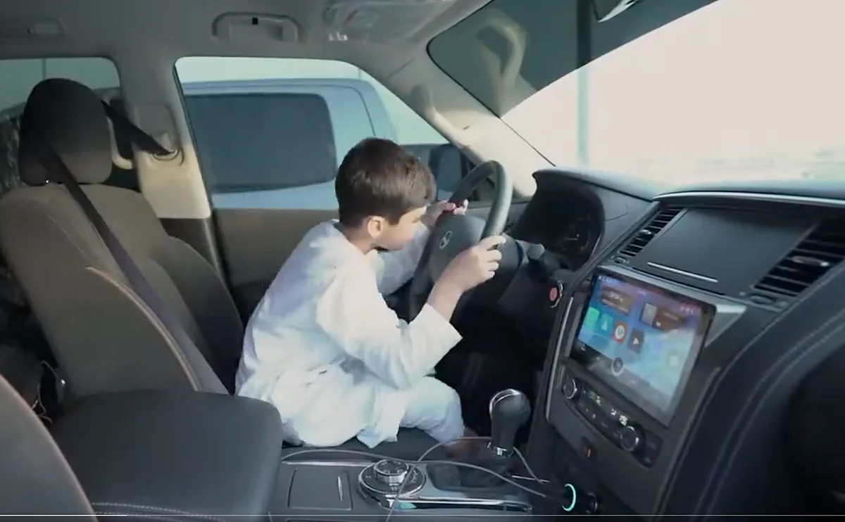 In the clip, a father tells his child he’ll be gone briefly while he runs into the supermarket, leaving the boy alone in the vehicle. After the father steps away, the child climbs into the driver's seat and accidentally turns off the engine, shutting down the air conditioning.
