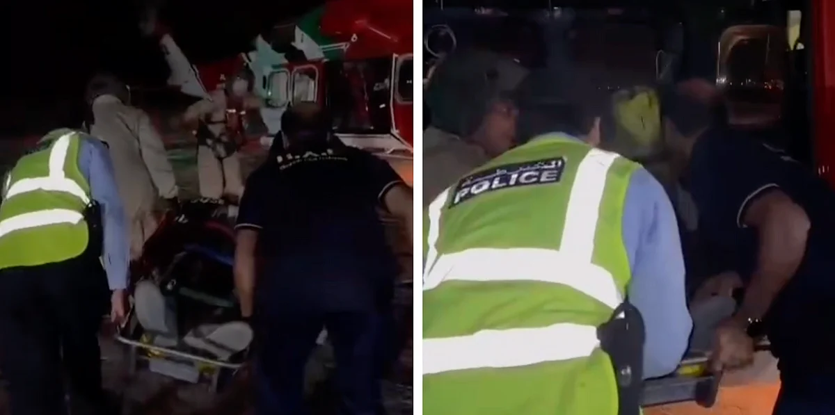 He was transported via helicopter to Al Zayed hospital to be treated for his injuries.