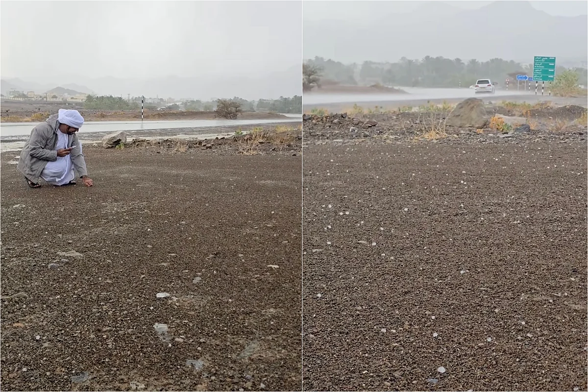 A video shared by the Storm Centre on Thursday, July 3, captured hail in the city of Ibri in Oman. The rain chasers can be seen picking up hailstones by the side of a road, making videos, unbothered by the downpour.