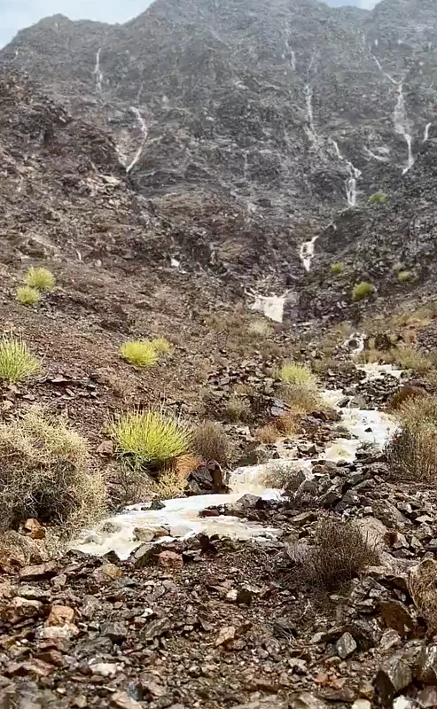 These rains in Fujairah caused waterfalls to form in the mountainous areas of Dibba.