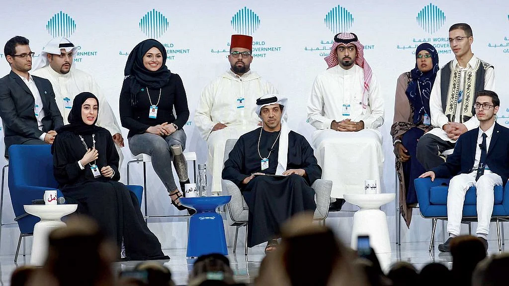 Displayed behind them on a big screen was a number that went beyond 108 million, which Sheikh Mansour described as the number of youth segment in the Arab World. "This number is not the number of victims of war or the number of losses in the oil sector nor figures fluctuating in the stock market or number of terrorist attacks. This number refers to the increase in the most important sector, which is the Arab youth." He said that the government's focus on Arab youth goes years back when His Highness Sheikh Mohammed bin Rashid Al Maktoum, Vice President and Prime Minister of UAE and Ruler of Dubai, was appointed the youngest minister in the world. He repeated the same legacy with Shamma Al Mazrui who was named the Youth Minister last year at the age of 22.