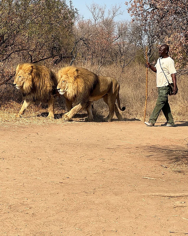 Jacobs' lodge allows tourists to participate in guided educational walks with lions, which he said helps pay his employees and fund his research facility.