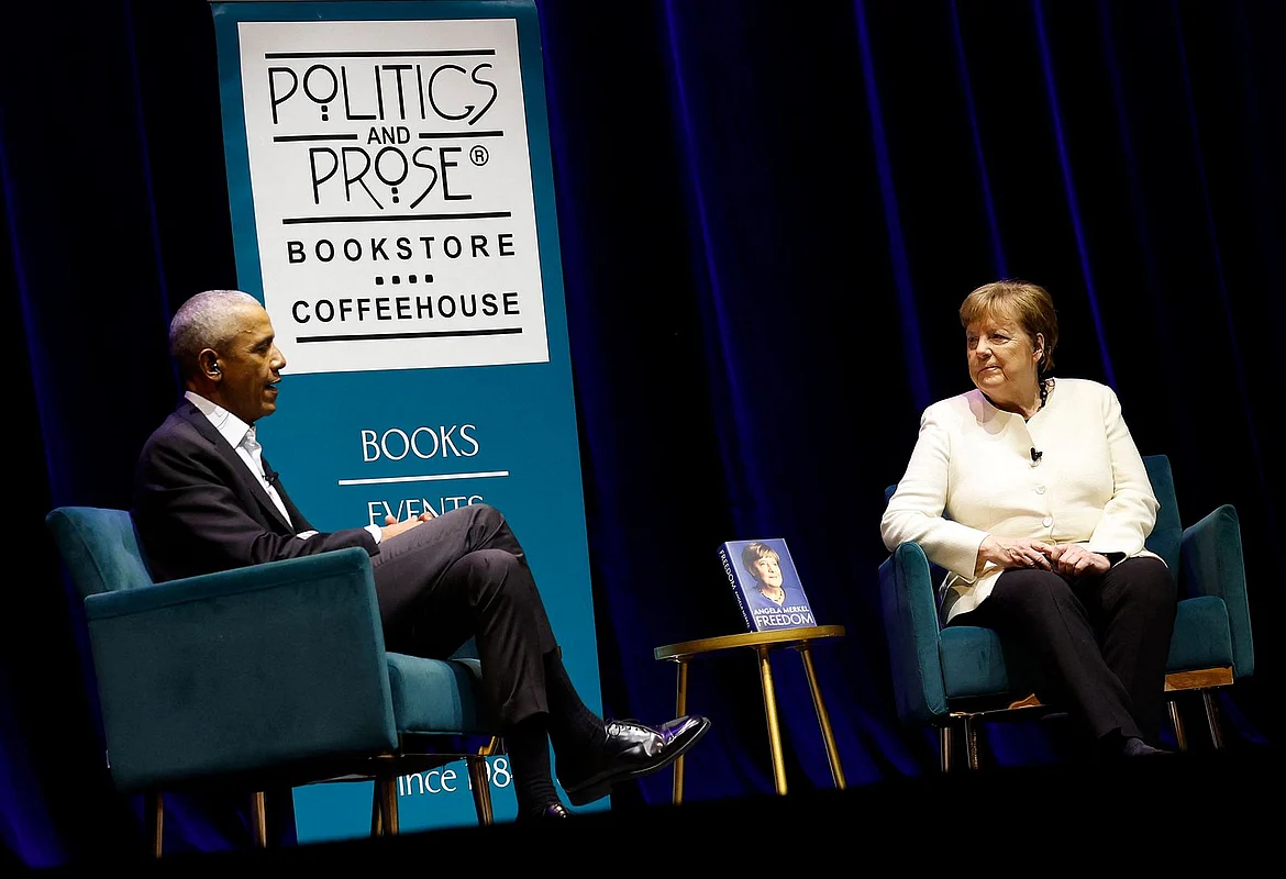 Former German Chancellor Angela Merkel and former US president Barack Obama, close political allies when they were both in office, reunited in Washington on Monday for an event to launch her memoir in the United States.
