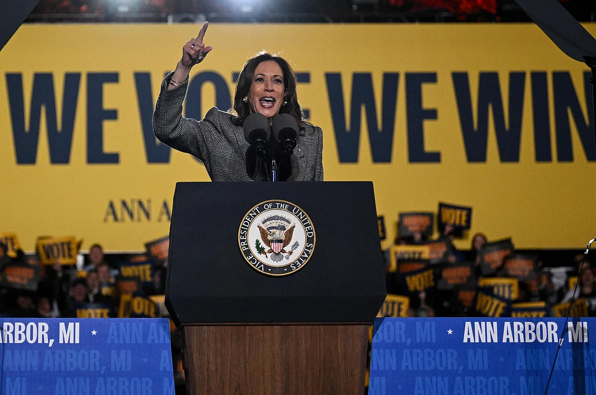 On Monday evening, Harris appeared at a rally in Ann Arbor, Michigan with her running mate, Minnesota Governor Tim Walz, that featured a performance by singer-songwriter Maggie Rogers.