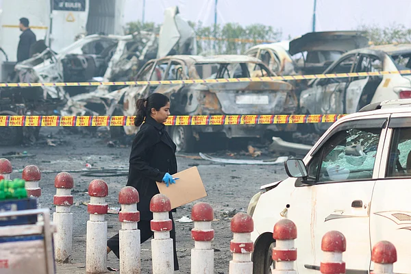 #WATCH | Delhi: Forensic team arrives at the spot after the blast near Gate no 1 of the Red Fort Metro station in Delhi
