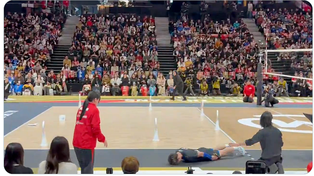 Volleyball player Yuji Nishida accidentally hit a courtside staff member with the ball while serving at the Japanese SV League All-Star Game on Sunday. Instead of a regular deep bow, per Japanese custom, he launched into a belly-slide across the court to express how sorry he was.