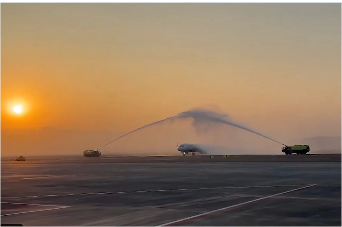 The Navi Mumbai International Airport (NMIA) in India's Maharashtra commenced its airside operations today with the arrival of its first commercial flight. The aircraft was accorded a ceremonial water cannon salute on arrival.
