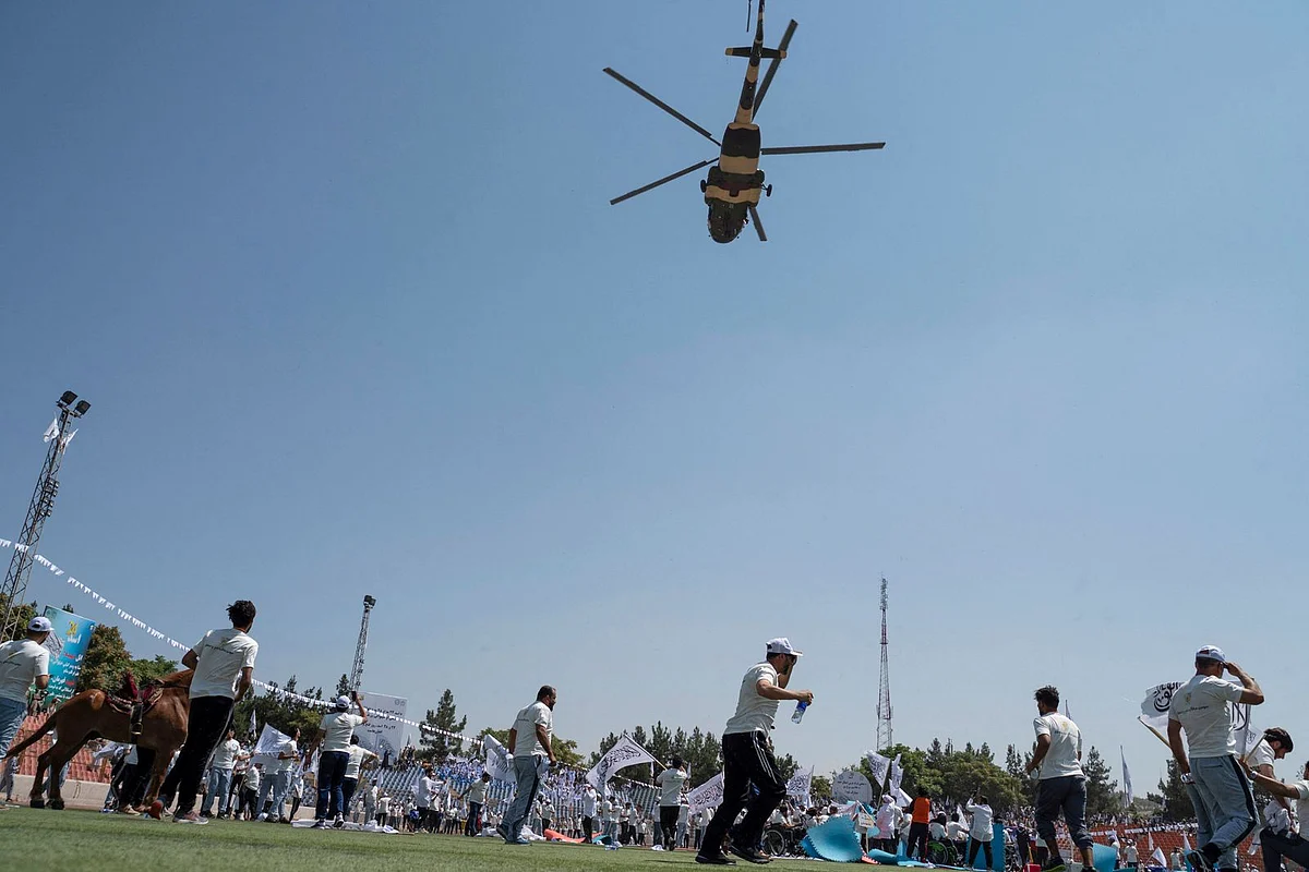 Helicopters also flew over the Ghazi stadium in Kabul, where hundreds of men gathered to watch an exhibition of athletics and performances of Taliban anthems.
