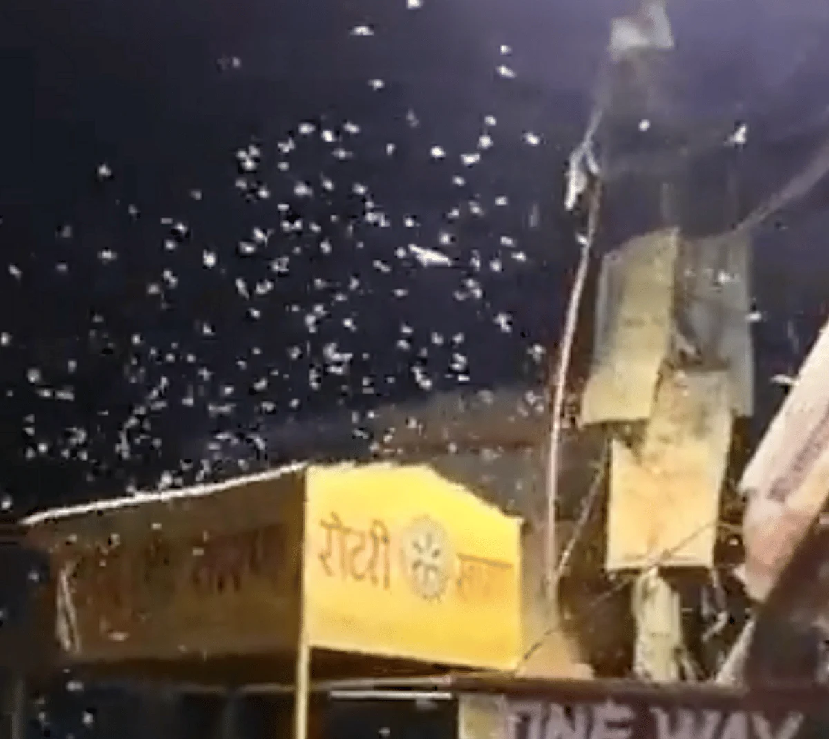 The alarming footage, captured last week in the Chhapra district of Bihar, shows hordes of the insects tumbling onto the street in thick flurries