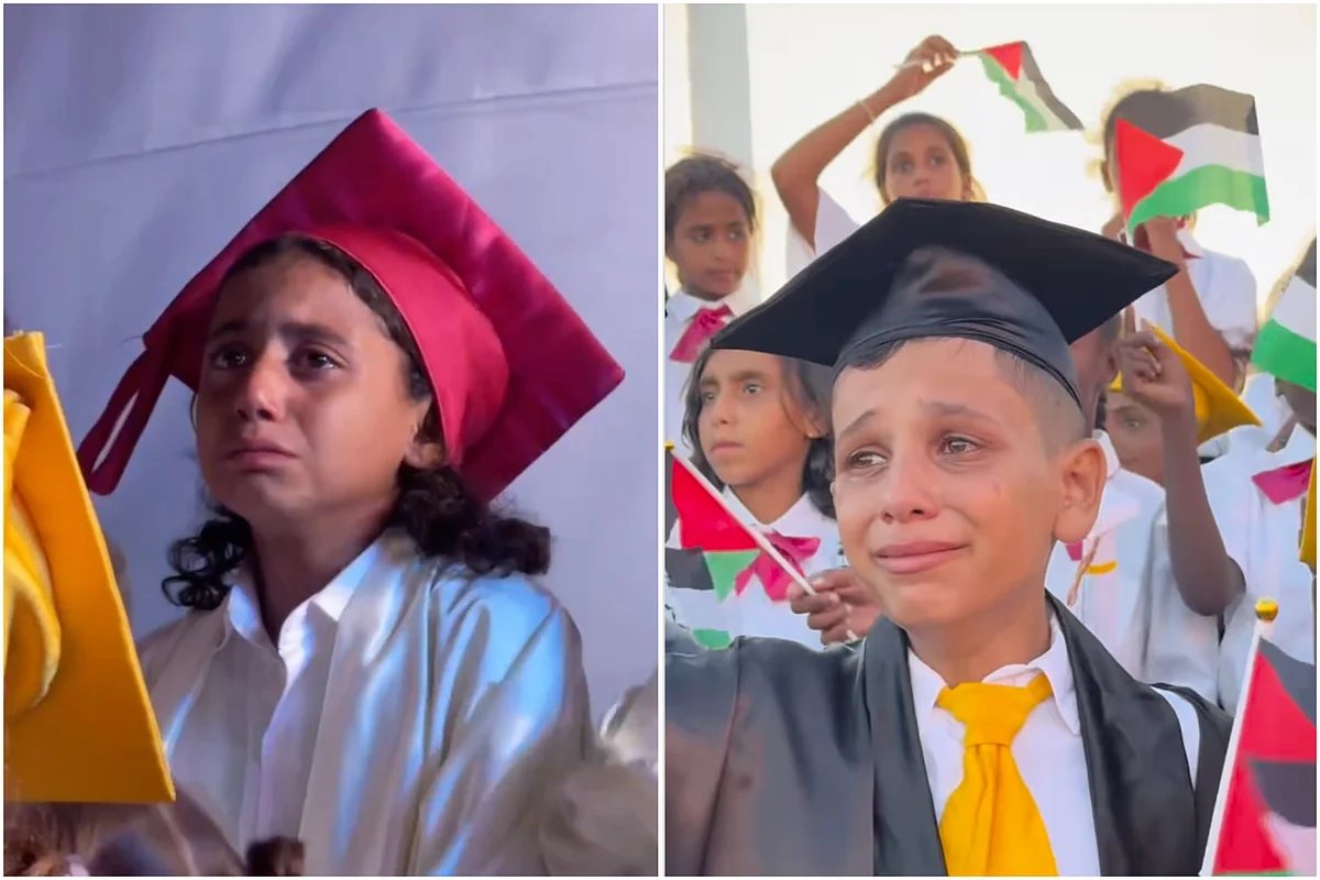Footage shared by Palestinian journalist Abdallah Alattar captures a scene that is both heartwarming and heartbreaking: young girls in simple gowns, some in tears, quietly wiping their faces as the ceremony continues. They are among the 1,000 orphaned children from the Al-Wafa Orphan Village, honoured for reaching an educational milestone in the most unimaginable conditions.