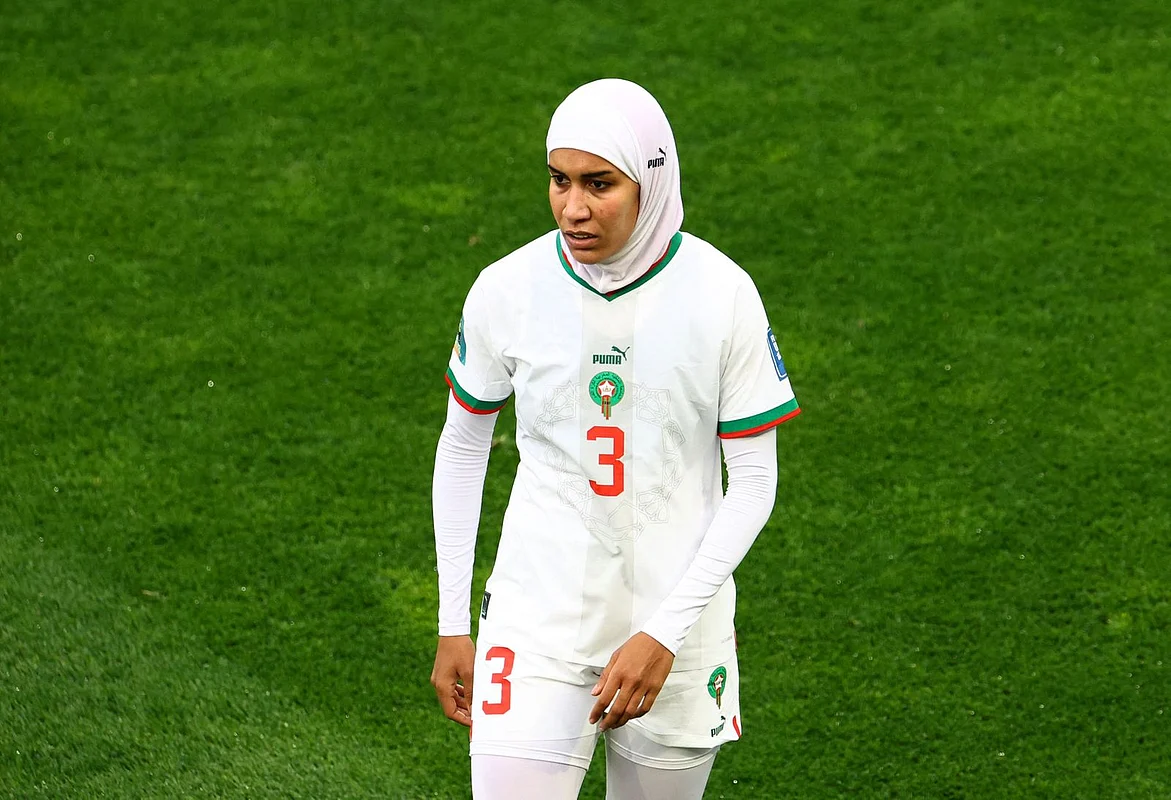 Nouhaila Benzina became the first player to wear a hijab during a Women's World Cup game when she sported the Muslim headscarf in Morocco's match against South Korea on Sunday.