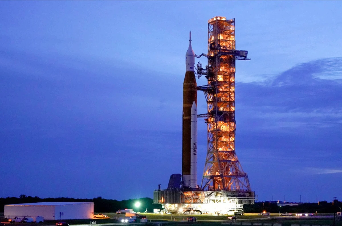 The SLS rocket set for Artemis mission had to be returned overnight to its storage hangar in order to shelter it from the approach of Hurricane Ian