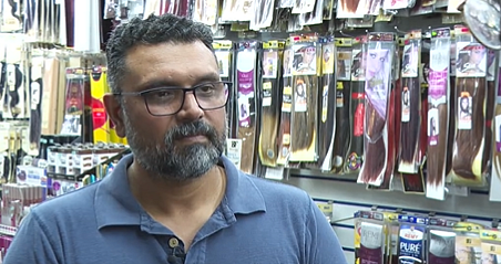 In widely shared video, the owner of Peckham Hair and Cosmetics is seen holding a woman from behind as she hits him with a shopping basket