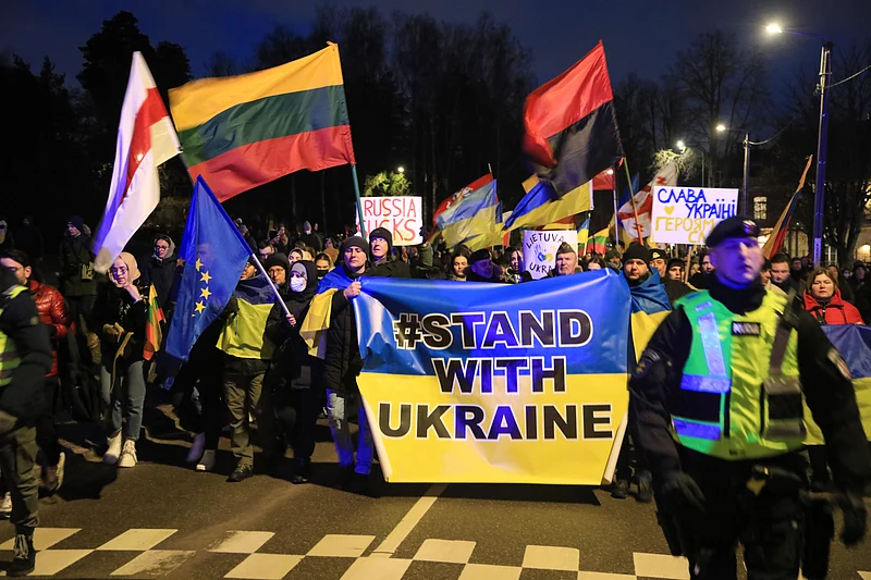Protesters turned out in cities around the world on Thursday to show solidarity with Ukraine against Russian President Vladimir Putin's “surreal war” on the former Soviet country, as hundreds of demonstrators who marched in Russia itself were arrested.